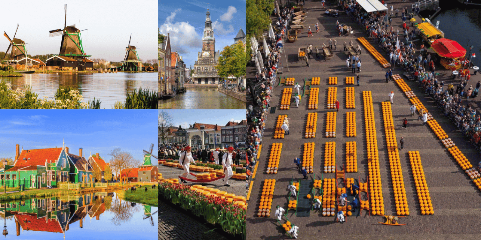 Nuestra primera parada será Alkmaar, una preciosa ciudad rodeada también de canales donde viviremos una experiencia única del mercado del queso, una tradición que se remonta al siglo XVI donde veremos cómo los quesos son transportados en carretas por los “hombres del queso” vestidos con sus trajes típicos y conoceremos más sobre esta deliciosa especialidad holandesa 🧀