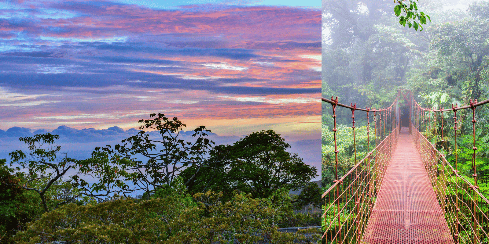 Hoy viajaremos hacia las montañas de Monteverde, uno de los santuarios de vida silvestre más impresionantes del trópico. El camino asciende entre paisajes verdes y, poco a poco, la neblina comienza a envolverlo todo… así sabremos que estamos entrando en el famoso bosque nuboso.